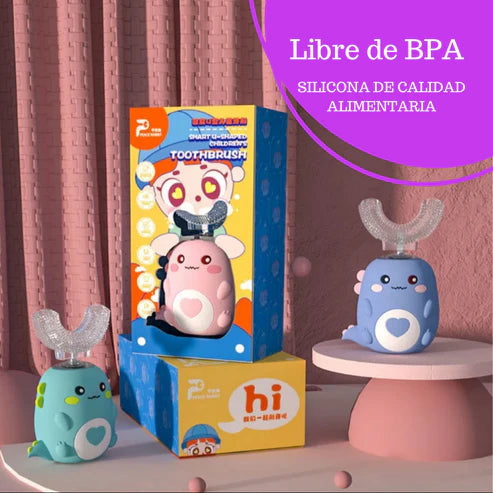 Con su cabezal en forma de U, este cepillo llega a cada rincón, asegurando una limpieza completa y sin puntos ciegos. Así, tu pequeño disfrutará de dientes más limpios y un aliento fresco.