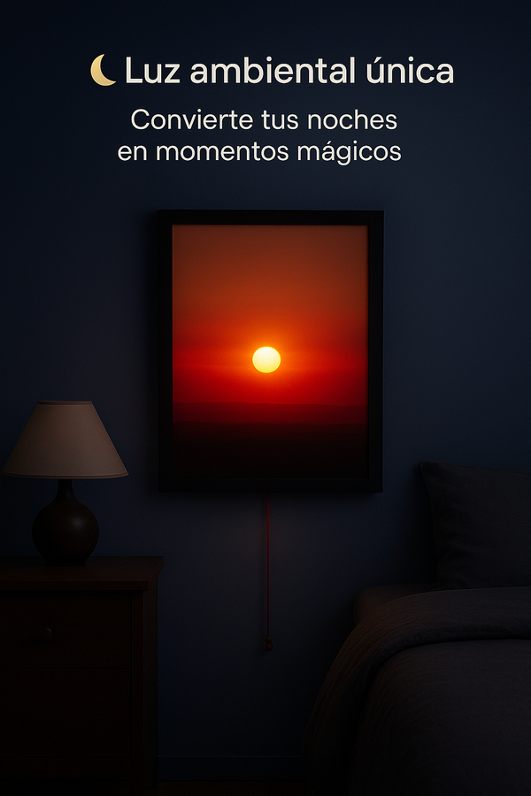 Disfruta de una atmósfera relajante con luz cálida que simula el atardecer. Perfecta para descansar después de un día largo.
