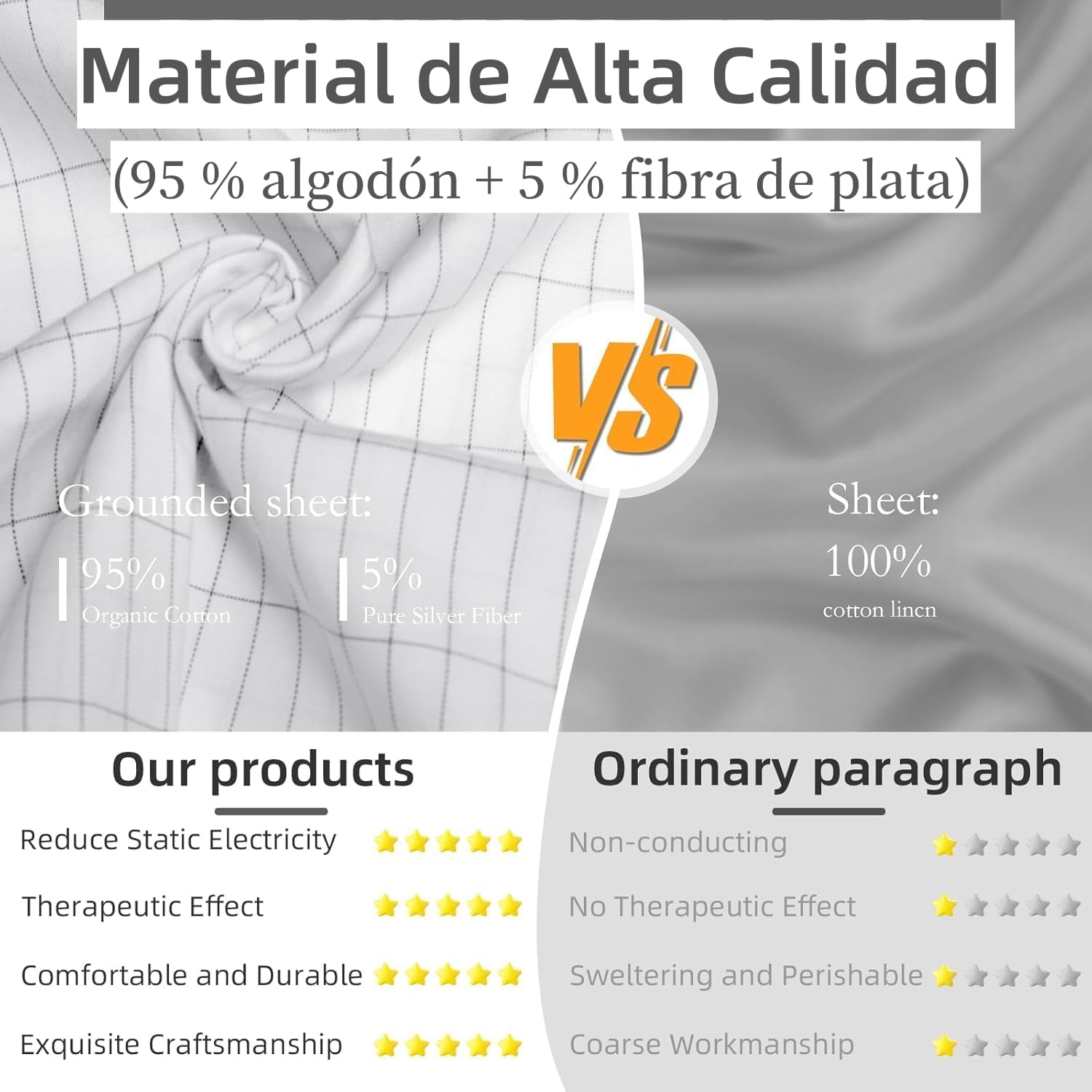 A diferencia de otros, nuestra sábana de tierra ofrece conexión segura y efectiva con la tierra, mejorando tu sueño y bienestar general. Su diseño orgánico y conductor es fácil de usar y mantener, garantizando durabilidad.